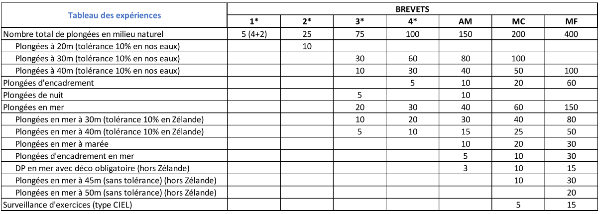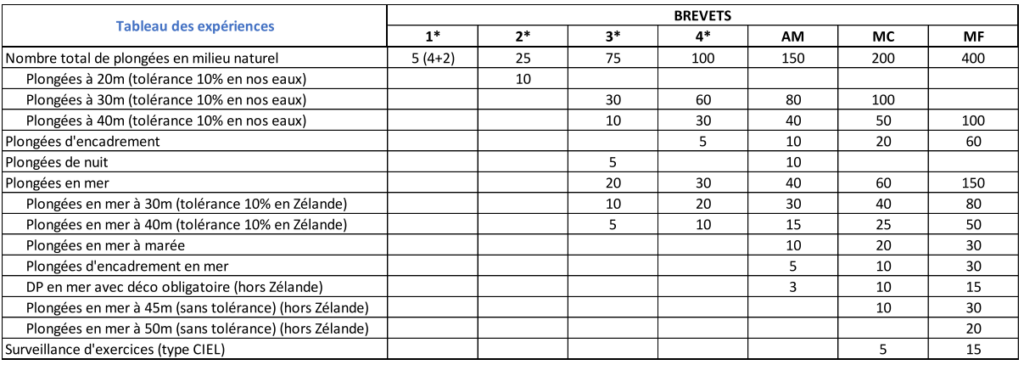 En 2026, la LIFRAS voit aboutir un de ses chantiers sur la réforme des brevets. Dans un soucis de clarté et d’harmonisation, un nouveau tableau récapitulatif des expériences requises a été publié. Vous le trouverez ci-dessous